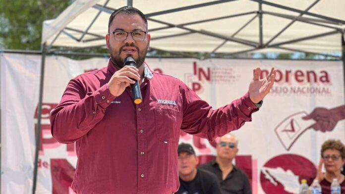 El líder morenista estuvo presente en la asamblea del sexto distrito federal, junto con la enlace federal Jessica Terrazas; el consejero estatal Héctor Bafidis; la regidora América Mayagoitia; el delegado estatal del Instituto Nacional de Antropología e Historia, Jorge Carrera Robles; y Carlos Durán, colaborador del Comité Ejecutivo Estatal.